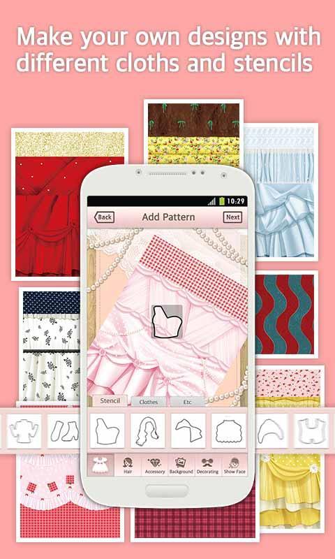 “ I am a Designer ”具有衣服,頭髮和配件樣式以及可以用來設計衣服的衣服圖案,您可以在模型和體驗中添加自己的臉,並通過裝飾和著色,可以通過此應用來改善自己的創造力和想像力。