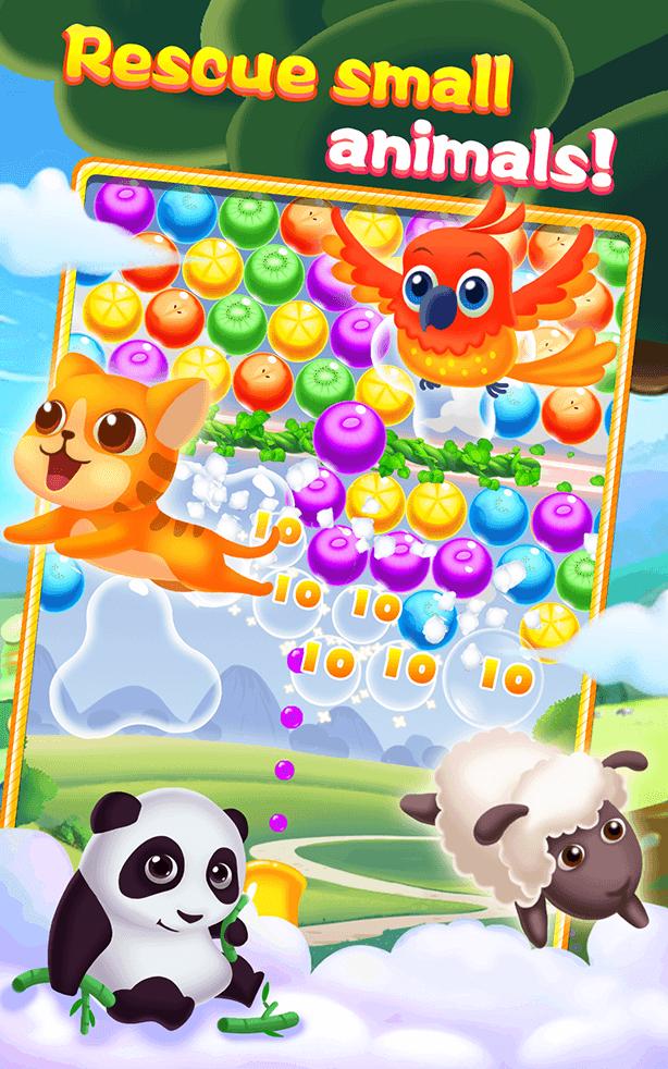Go Jungle冒險!如您所見,可愛的森林動物被困在氣泡中。孔雀不能膨脹華麗的羽毛。鳥不能唱美麗的歌曲。雜片無法聞到鮮花的香氣,兔子無法品嚐新鮮的綠草。做一個戰士,並儘最大努力用五顏六色的氣泡營救無辜的動物!最後,您將面對老闆。動物不良的猴子隱藏在眾多氣泡中,因此您無法靠近。使用才華,打破障礙,擊敗傳奇的老闆,現在解放了整個森林!