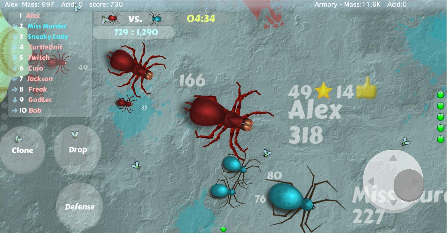 生存足夠長的時間,成為Spider Box中最大的蛛網,但要當心酸滴!