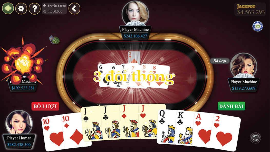 您只需將其打開並與虛擬對手一起玩,可以發揮自己的最佳作用,這是提高他們的技能的遊戲,它們都在玩家以南的Tienlen玩耍以成為真正的球員!