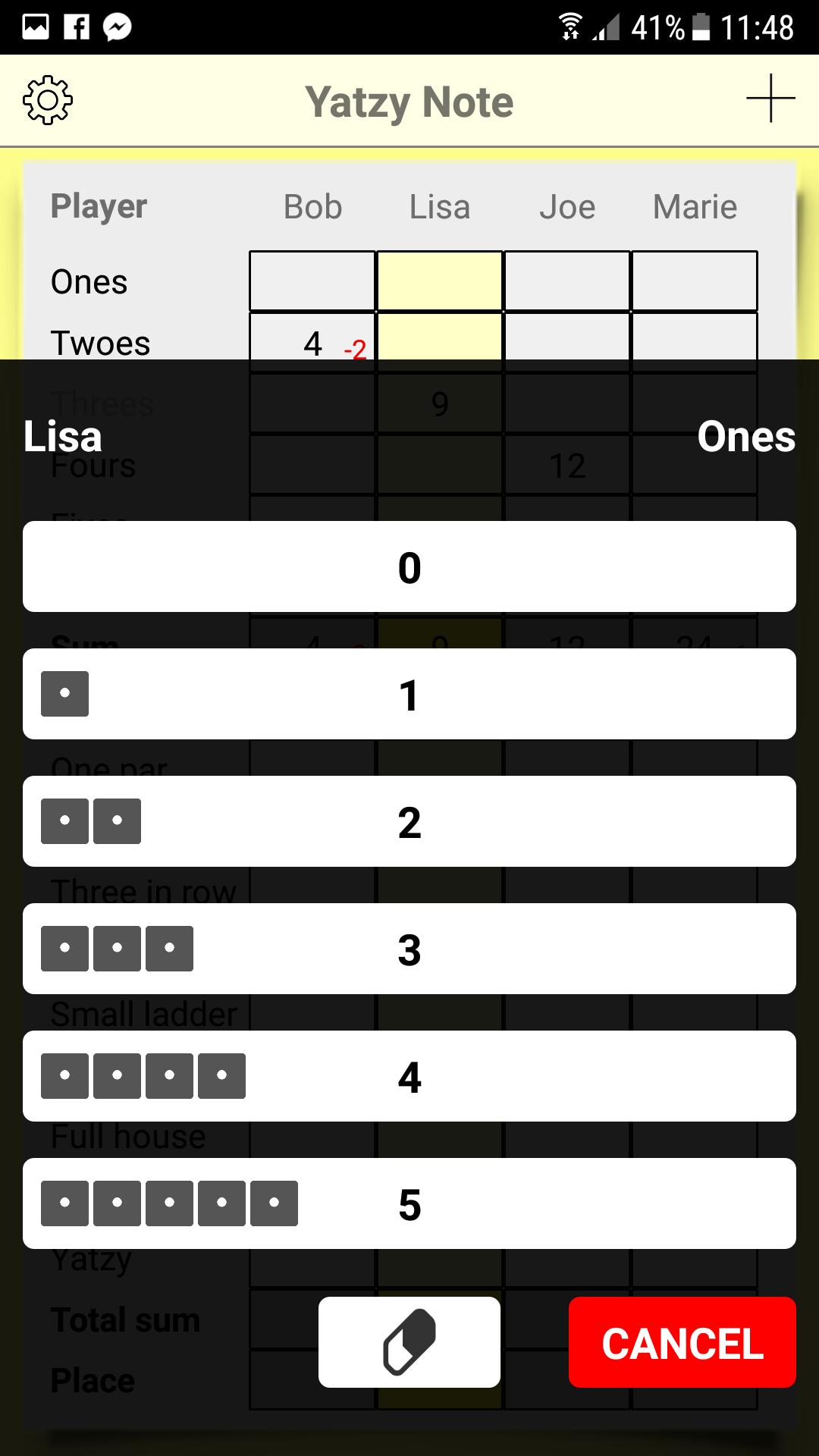 *友好的驗證,如果Yatzy Note認為您單擊了錯誤的分數框。